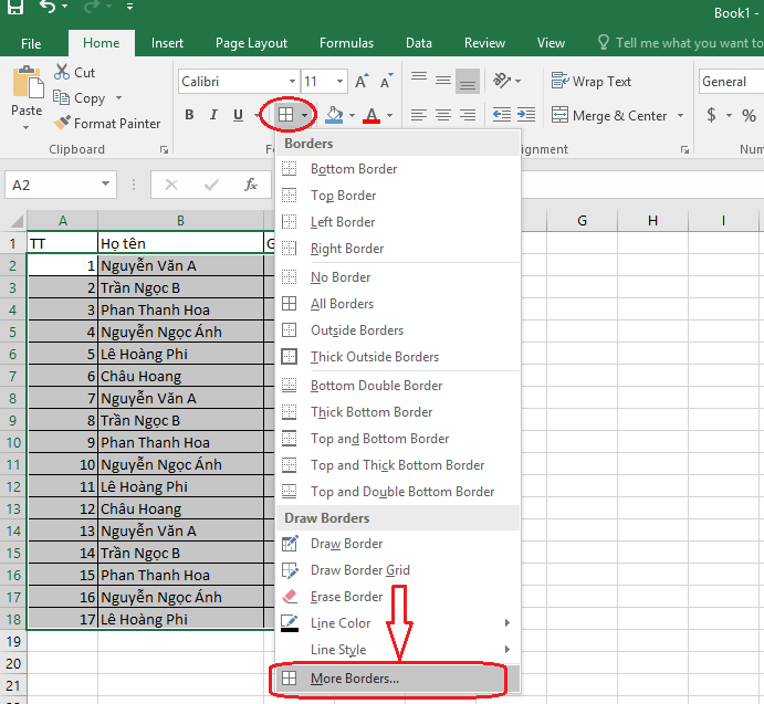 - Chọn bảng cần kẻ khung