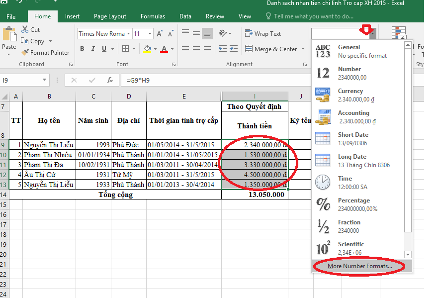 7. Chèn chữ "đ" là đơn vị "đồng" vào bên phải số tiền